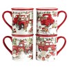 Celebrate the holiday season with Certified International’s colorful” Red Truck Snowman “16 pc. Dinnerware Set designed by the popular artist Susan Winget . Snowy scenes of smiling snowmen alongside a shiny red truck loaded with gifts decorate every ceramic piece . Each set includes 4 -10.25 in. square Dinner plates, 4 assorted 8.5 in. square Dessert Plates, 4 assorted 16 oz. Mugs and 4 assorted 5.25 in. Dia. X 3 in. H Ice Cream Bowls. Coordinating serveware and 3-d accessories are available for a colorful holiday table.