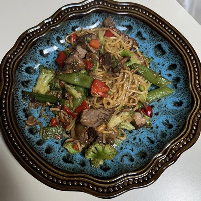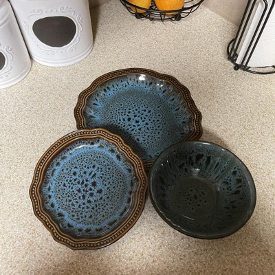 This set, blue with brown trim (called Lagoon on Target's website, but listed as Mystic Waves on the manufacturer's site) is absolutely beautiful. It is also not as heavy as the typical stoneware set, making it more appropriate for me (hand and balance issues). The bowls are black matte on the outside and have a blue patina on the inside. We cannot wait to entertain using our new dishes. I love them so much, I have already ordered another set!
