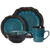 Elama's Blue Lagoon 16 Piece Dinnerware Set brings a truly stunning accent to your table with its unique pattern and textures. A textured pattern rim around the edges of the dinnerware enhances the luxurious feel and look of these dinnerware pieces. Ideal for every day casual settings as well as formal gatherings. Crafted from high quality stoneware for a durable and long lasting design.