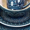 Add a touch of sophistication to your next meal with Elama Navy Mandala 16 Piece Stoneware Dinnerware Set. This set boasts a beautiful textured design which gives a nod back to old world charm and extravagance. Each piece is decorated with an intricate bohemian design. Ideal for every day casual settings as well as formal gatherings. Crafted from high quality stoneware for a durable and long lasting design.