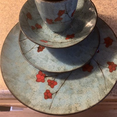 16pc Stoneware Sky Bloom Dinnerware Set Red/Blue - Elama: Floral Dish Set, Microwave & Dishwasher Safe, Service for 4