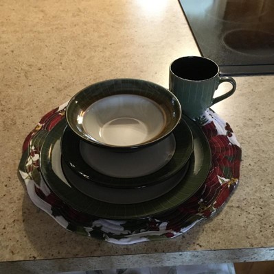 16pc Stoneware Striped Dinnerware Set Green - Elama: Solid Pattern, Service for 4, Dishwasher & Microwave Safe