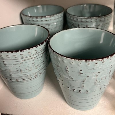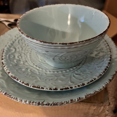 16pc Stoneware Tropical Breeze Dinnerware Set Blue - Elama: Microwave & Dishwasher Safe Dishware Set for 4