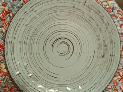 These are a gorgeous set of plates - I purchased them in the tropical breeze coloring. The rustic design is absolutely lovely and the plates looking absolutely beautiful as a place setting. My only complaint with these are that it is somewhat difficult to use them for everyday use as the plates are quite heavy and therefore a bit cumbersome to move around and wash. For special occasions, however, they are absolutely lovely.