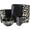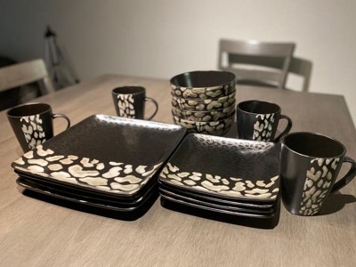 16pc Stoneware Wild Pattern Square Dinnerware Set Black - Elama: Animal Print Dishware Set, Service for 4, Microwave & Dishwasher Safe