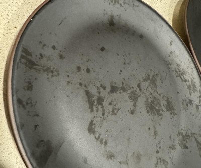 I have bought two sets of this dinnerware. I like it, but I am not sure what to do about these spots. We don’t eat oily foods or anything, but these spots are not going away. I bought this last month. I have tried both the dishwasher and hand washing. This is frustrating after spending so much money. It’s also embarrassing in front of guests. Can someone help or suggest something?