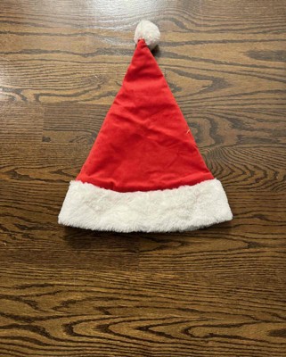 Just what I was looking for and nice red soft fabric Santa hat with soft white fluffy faux fur.