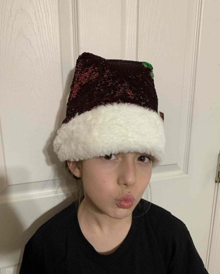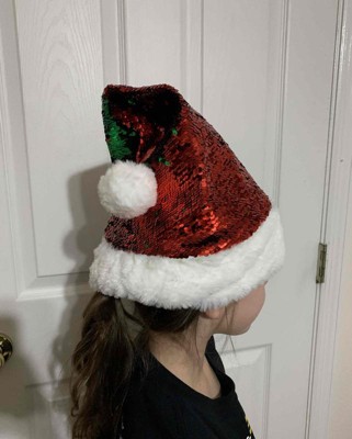 [This review was collected as part of a promotion.] This Santa hat is VERY sequinny! It’s incredibly festive, and the dual sided red and green sequins make for a fun surprise. The sequins are on really securely, and it’s easy to make the hat red, green, or a mix. The white Pom up top is really cute, and the faux fur white trim at the bottom is soft. On my head, the hat is more structured than I was expecting. While it fits my head, it may be too small for those with a larger than average head. I received an incentive to write this review.