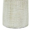Displayed in your dining or living room, entryways or hallways, this vase is sure to bring charm and joy to any space. Designed with felt or rubber stoppers at the base that prevent scratching furniture and table tops, as well as sliding around. This item ships in 1 carton. Carvings on the shaft add more texture to the already layered coating. Suitable for indoor use only. This item ships fully assembled in one piece. Made in India. This is a single white colored vase. Coastal style. Vase has a 3.60 in mouth opening.