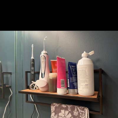 17" x 7.9" Floating Industrial Wood Wall Shelf with Metal Towel Bar Black - Danya B.: Wall Organizer for Bathroom