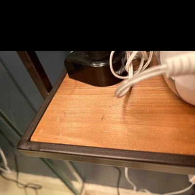 The iron shelf was the look I wanted but it is cheaply made for the price. The wooden bottom is just a cheap piece of plywood and you will need to buy wall anchors and screws that are black to match.