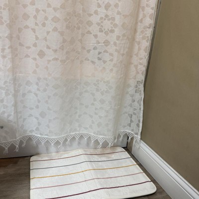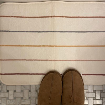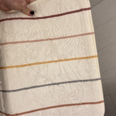 A: The bath rug is rectangular in shape, measuring 17 inches by 24 inches.