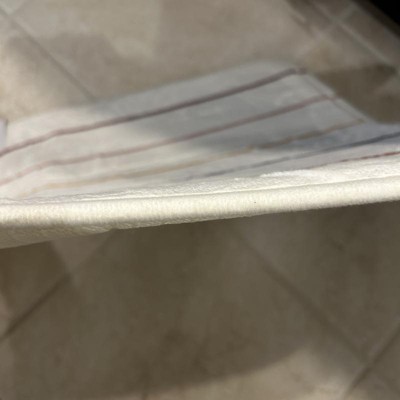 A: The bath rug is made from 100% recycled polyester microfiber fabric.