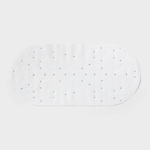Add comfort and style to your bathroom decor with this Rounded Bath Mat from Room Essentials™. This round bath mat boasts an allover raised pattern with suction cups on the back to create a firm grip on the shower surface. Easy to integrate into any bath decor style or color scheme, the plastic bath mat can be spot or wiped clean for easy maintenance and care.