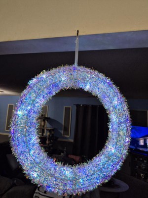 17.5" Christmas LED light Wreath Iridescent Tinsel - Wondershop™