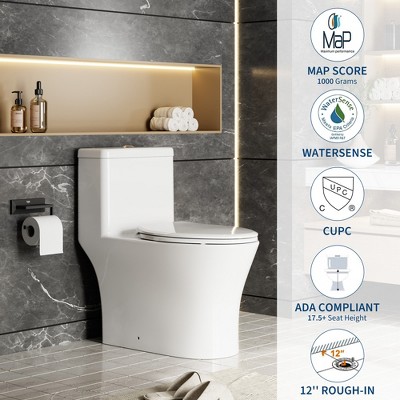 17.5" Elongated One-Piece Toilet ¨C V-Shaped Soft-Close PP Seat & ADA Height Top Flush, Water-Efficient Design for Home/Commercial Use