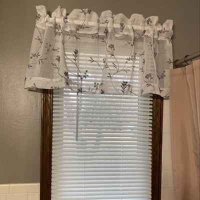 17"x50" Delia Embroidered Floral Sheer Rod Pocket Curtain Valance White/Gray - No. 918: Botanical Window Valance