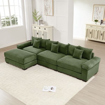 170" Oversized Cloud Modular Sectional Couch, Premium Corduroy 3-Seater Extra-Thick Armrests, Good Resilience Cushion, 12 Throw Pillows