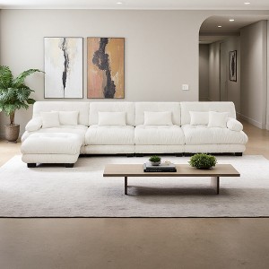 173.2" Chenille L-Shaped Modular Sectional Sofa with Bolster Armrests & Ottomans