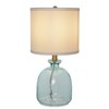 - STYLISH AND ELEGANT: This space-saving accent lamp features a textured glass body with an ocean blue finish and brushed nickel metal accents. A natural linen shade with matching harp and finial complete the look. The versatile design makes it the perfect addition to your living room, family room, bedroom, dorm room, home office, craft room, kitchen or any open concept living space. Great for apartment living or DIY home remodeling projects and suits a variety of styles including modern, transitional, contemporary, industrial, global, farmhouse, rustic and traditional decor.