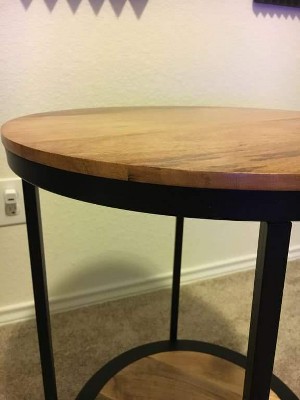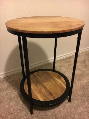 For the price, this is a very nice little table. It fits perfectly between our two Bellingham chairs (also from Target) and, though the wood was a little lighter color than I anticipated, works well with our other unfinished and iron (industrial/farmhouse) furnishings. Easy to put together, though I did have to rotate both the legs and the shelf to find the best fit. Seems very durable and good quality. Now we just need to hang some artwork!