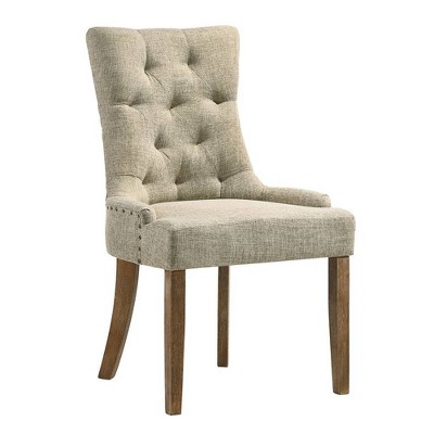 18" Fedele Accent Chair Tan Fabric/Cream Finish - Acme Furniture: Linen Upholstery, Wood Frame, No Assembly Required