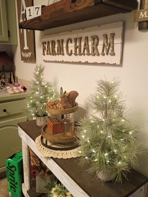 Add celebratory shimmer to your holiday decor with this 18-Inch Shimmer Long Needle Christmas Artificial Tree from Threshold™. This artificial tree showcases faux pine long needle branches in a beautiful shimmer green hue that catches and reflects light for an enchanting seasonal display. It's placed in an off-white pot, making it perfect for tabletops, mantels, or smaller spaces where you want to create festive ambience with a touch of twinkle.