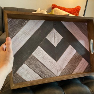 18" x 12.3" Country Rustic Geometric Wooden Serving Tray Brown - Stonebriar Collection