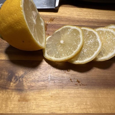 [This review was collected as part of a promotion.] This cutting board is very elegant and a great size. Please see the photo with a knife for reference. It is made of high quality wood and seems like it will hold up well. I normally do not like wooden cutting boards since they can be harder to clean and maintain. This one does show some knife marks but it’s not too bad. You can also use it as a serving platter since it’s very beautiful. I would definitely recommend and a great value. I received an incentive to write this review.