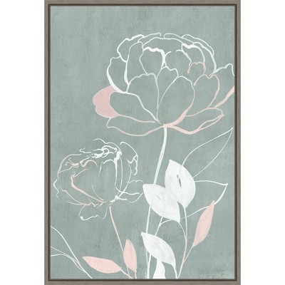 Wash woodgrain coloring and dramatic depth. The frame measures 1 in. wide and stands 2 in. off the wall. The canvas appears as if it is floating in the frame because it has a narrow gap between the edge of the canvas and the frame. The overall size of this framed canvas print measures 18 in. W x 24 in. H.