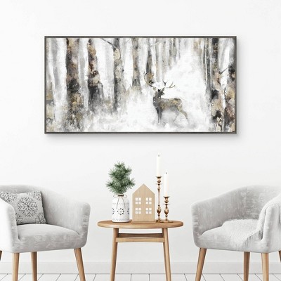 Sylvie Bison in Snow Framed Canvas by Amy Peterson Art Studio Natural - Kate & Laurel All Things Decor
