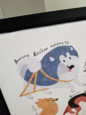 We love this print. Its printed on an slightly off white/ ivory canvas inset in a black frame. We bought it because we happen to own an 'awesome Alaskan Malamute' and thought it was a cute addition to the home.