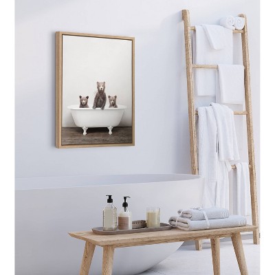 18" x 24" Sylvie Three Little Bears in Tub Framed Canvas by Amy Peterson Gold: Animal Nursery Wall Art - Kate & Laurel All Things Decor