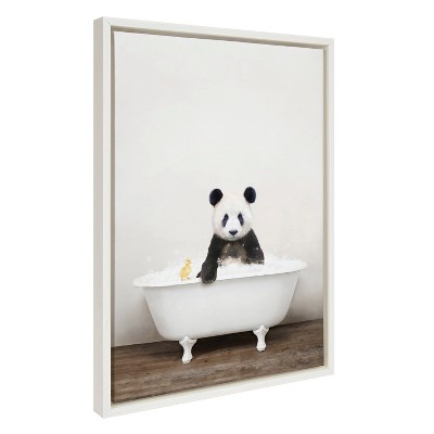 Transitional Canvas Wall Art: Adorable bathroom animal art on framed high quality gallery-wrapped canvas. Outside display dimensions are 24 inches by 18 inches by 1.6 inches