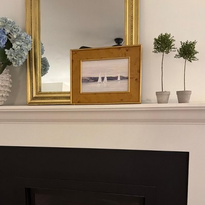 Bring a touch of oceanic vibe to your decor with the 18"x14" Sailboat Wall Art from Threshold™ designed with Studio McGee. Crafted on a block print medium, this art piece features a gold-toned sailboat, perfectly framed for a polished look. The compact horizontal design fits seamlessly into various spaces, adding a serene ocean-inspired charm to your home instantly.