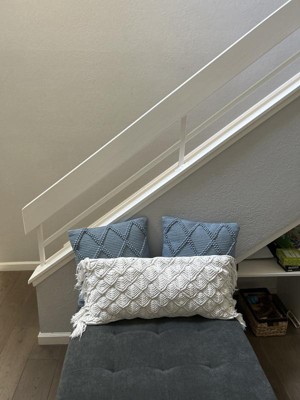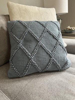 18"x18" Life Styles Diamond Lattice Square Throw Pillow Ocean Blue - Mina Victory: Textured Pom-Pom Pattern, Casual Decor, Zippered