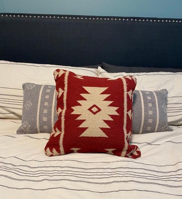 18"x18" Southwestern Striped Square Throw Pillow Red/Ivory - Rizzy Home: Aztec Pattern, Cotton/Wool Blend