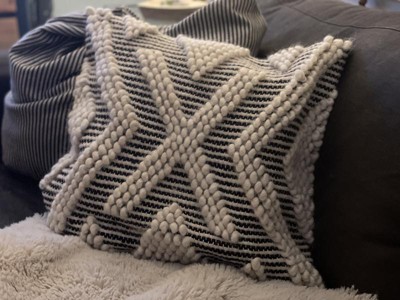 [This review was collected as part of a promotion.] When updating my couch pillows for the season, I like to have a couple of timeless pieces. This arrow woven pillow is perfect for all year! It’s thick, durable, well seamed, and tightly woven. It’s semi soft, definitely more accent than snuggle worthy, but gorgeous nonetheless. The back is a tight soft black cloth with a mid located zipper. It is a great accent piece and complements my couch perfectly. Highly recommend!