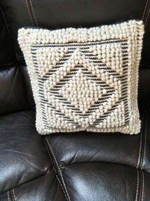 18"x18" Woven Poly-Filled Diamond Design Square Throw Pillow Black/White - Saro Lifestyle: Cotton & Wool, Indoor Decorative Cushion
