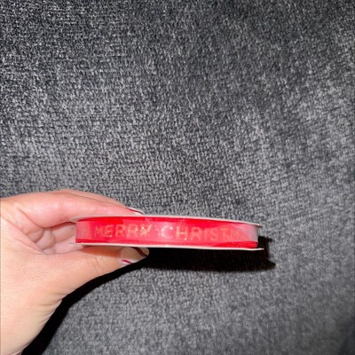 18' Christmas Fabric Ribbon Merry Christmas on Red Sheer - Wondershop™