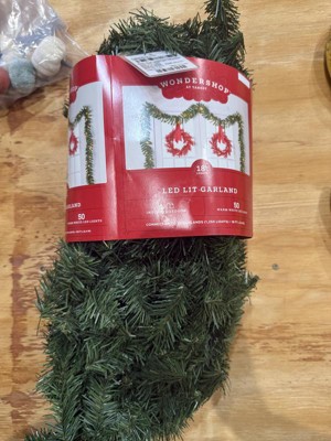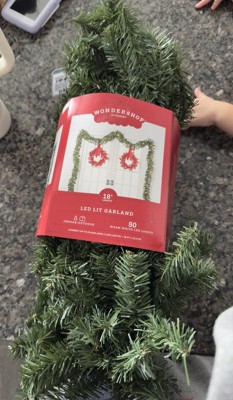 18' Christmas Pre-Lit Artificial Pine Bough Garland Green with LED Lights - Wondershop™