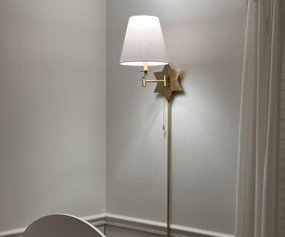 With a versatile design, this contemporary swing-arm sconce can be plugged in or hardwired in any space. With a unique star design on its base and light cotton shade, this sconce adds an element of glam to any bedroom or living area. Even with its vintage aesthetic, this sconce boasts an easy-to-use USB port for the charging of mobile devices.