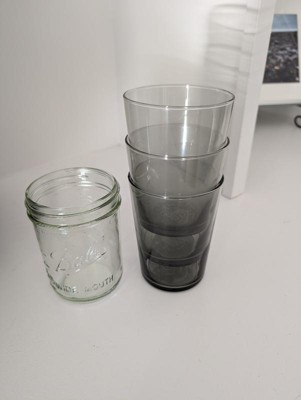 These appear to be quality tumblers. They are stackable and a decent size. Showing pictures with a clear mason jar for reference. Unfortunately I'll be returning because I want clear, not gray glass. Very disappointed because no where in the title or description does it note they are gray.