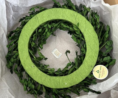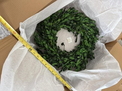 - FAUX GREENERY WREATH DIMENSIONS: 4”L x 18”W x 18”H, 2 lbs. Perfect for both indoor and covered outdoor use, this boxwood wreath is a seasonal must-have for your home’s décor.
