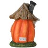 This tabletop Halloween decoration has a ghost bursting through the window of this haunted house shaped like a pumpkin. A large black spider crawls on the thatch roof while a black cat slinks along below. Inside the house is a single battery powered multicolor LED light that glows through windows and cutouts. Constructed of strong yet lightweight polyresin material.