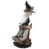 The 15 inch Halloween Witch Holding Black Cat statue is a captivating and bewitching decoration that brings the essence of Halloween to life. Standing at 15 inches tall, this witch is dressed in a combination of gray and black attire, with a long flowing robe that gives her an air of mystery and magic. Her pointed witch's hat, elegantly perched atop her head, completes the iconic look. Whether displayed on a mantel or bookshelf, this witch and black cat statue serves as playful piece of Halloween decor.