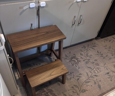 Q: Can you please post a picture of the bottom step folded up into the stool? Thx