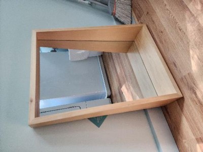 Just received this today. It is beautiful if you like the clean lines of traditional Scandanavian design. Beautifully crafted, heavy and of a soft birch colored wood. Box was damaged in shipment, but mirror was well packaged and undamaged. Highly recommend. Thanks for another wonderful buy, Target.
