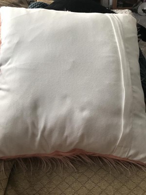18"x18" Poly Filled Long Hair Faux Fur Square Throw Pillow Ivory - Saro Lifestyle