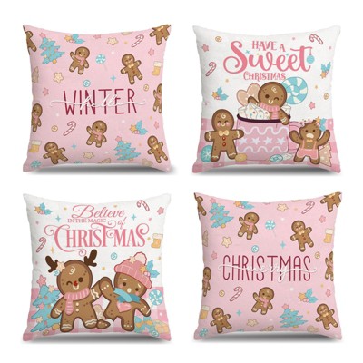 Christmas Decorations Linen Fabric Pillow Covers 18 x18 Set of 4 Farmhouse Decorative Throw Cushion Covers Deer Christmas Tree Snowflake Xmas Pillow Cases Outdoor Winter Holiday Decor Sofa Couch
